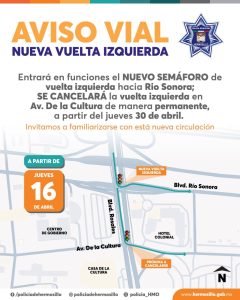 Entrará en operación vuelta izquierda anticipada en calle Rosales este jueves 16 de abril